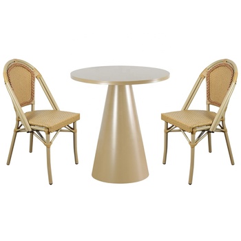 Modern restoran Cafe yemek masası sandalye seti Metal paslanmaz çelik alüminyum alaşımlı mobilya yemek masası s ve sandalyeler